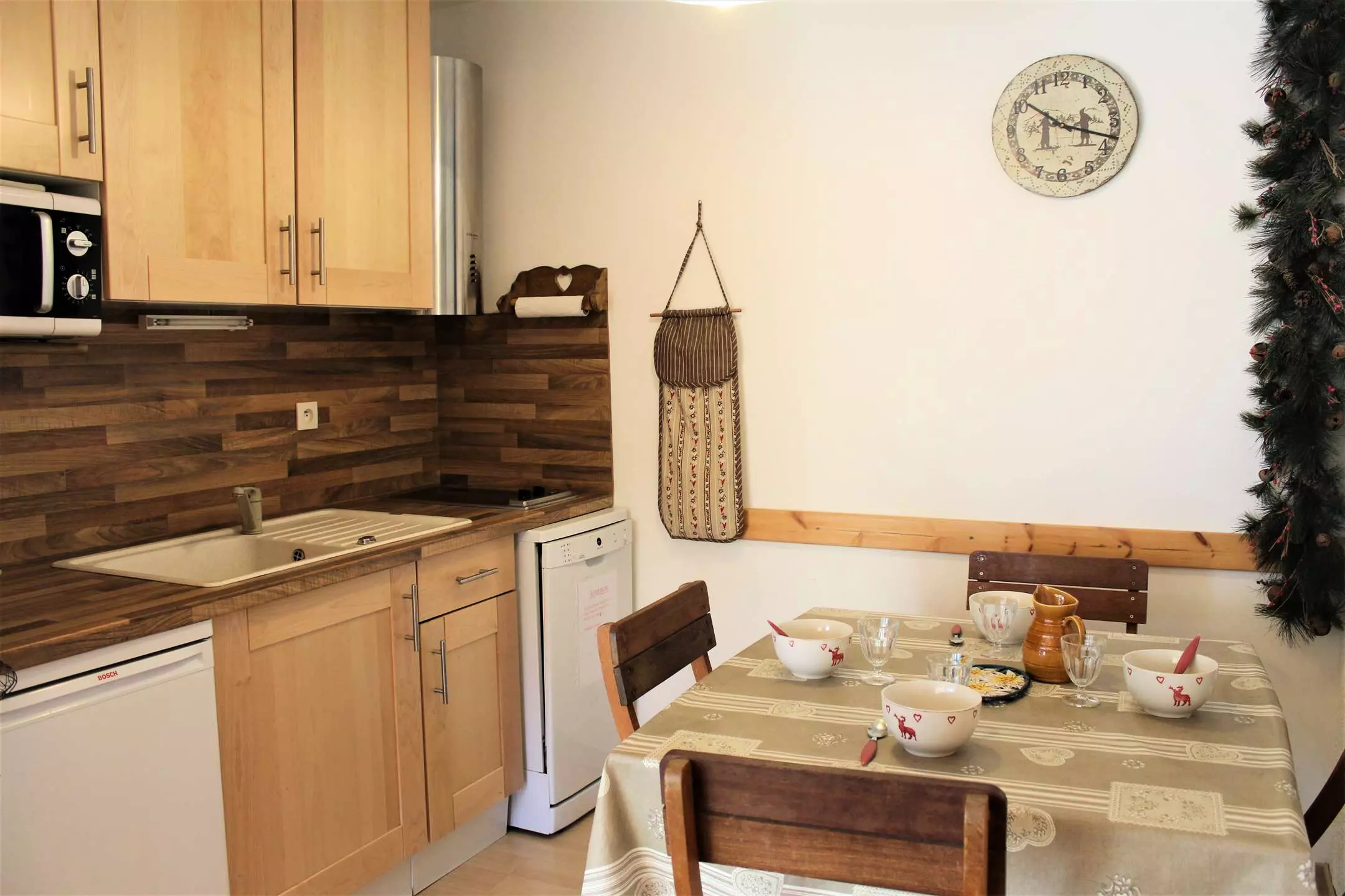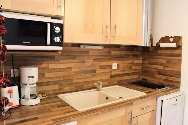 Cet appartement de vacances se compose d'une première chambre avec un lit deux places et d'une seconde chambre avec deux lits superposés une place. Dans le séjour vous disposez d'un canapé convertible BZ, d'un coin cuisine équipé et d'un coin repas. Une salle de bain avec baignoire et des WC séparés.