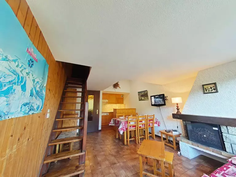 Cet appartement de vacances situé au 1er étage comprend un agréable séjour avec cheminée décorative et télévision, un coin cuisine équipé avec lave-vaisselle. A l'étage, une chambre avec 1 lit double, une chambre avec 2 lits 1 personne gigogne et 2 lits 1 personne rabattables, une salle de bain avec lave-linge et WC.