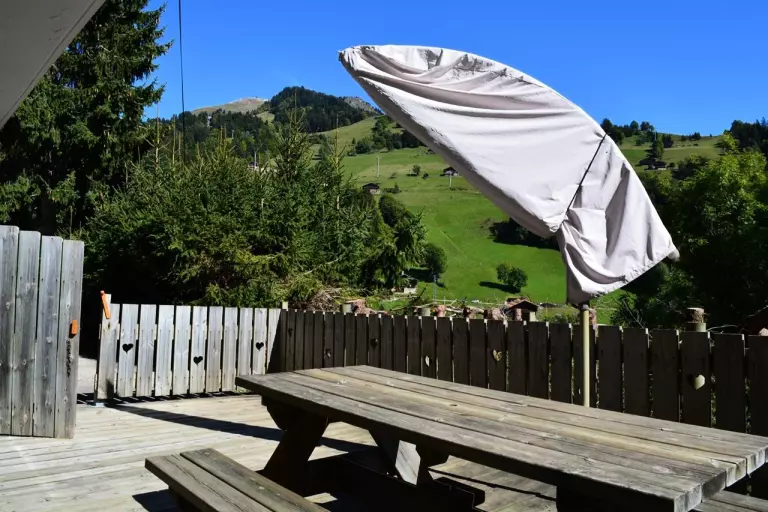 Les Plus de cette location à la montagne : Grande terrasse Sud, appartement de caractère bien équipé et bien aménagé, 2 places de parking privatives.