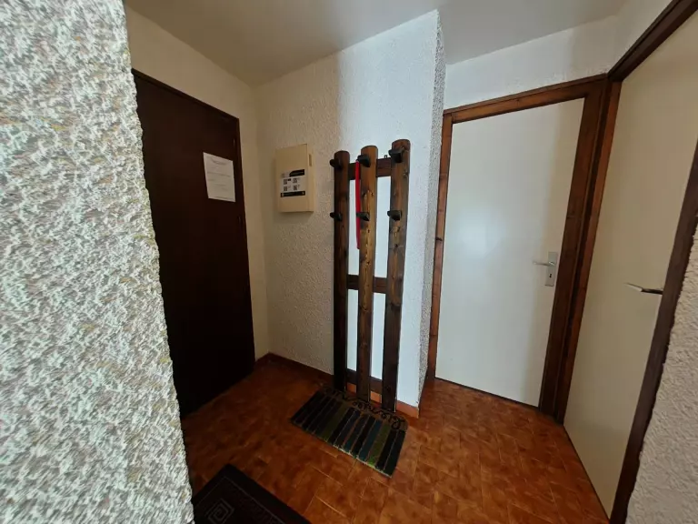 Cet appartement de vacances, au 1er étage avec ascenseur, comprend un séjour avec un canapé convertible deux places, coin repas et télévision, une kitchenette, une chambre avec un un lit deux places, une cabine avec deux lits superposés, une salle de bains et un WC indépendant.
