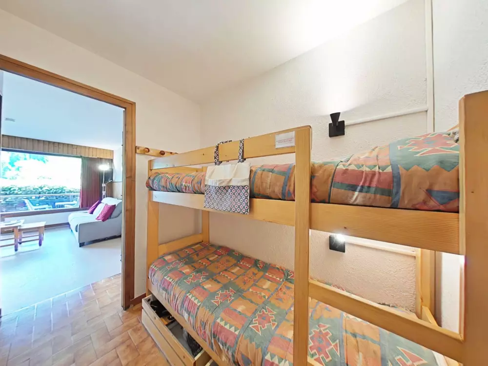 Cet appartement de vacances, au rez de chaussée, comprend un séjour avec canapé convertible 2 places et télévision, un coin cuisine équipé, une salle de bains avec WC, un coin nuit avec 2 lits 1 place superposés