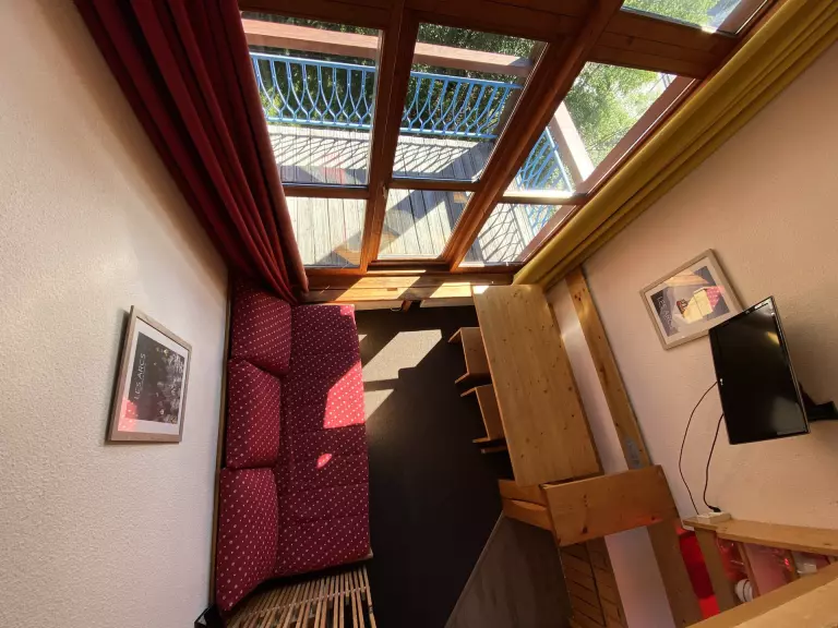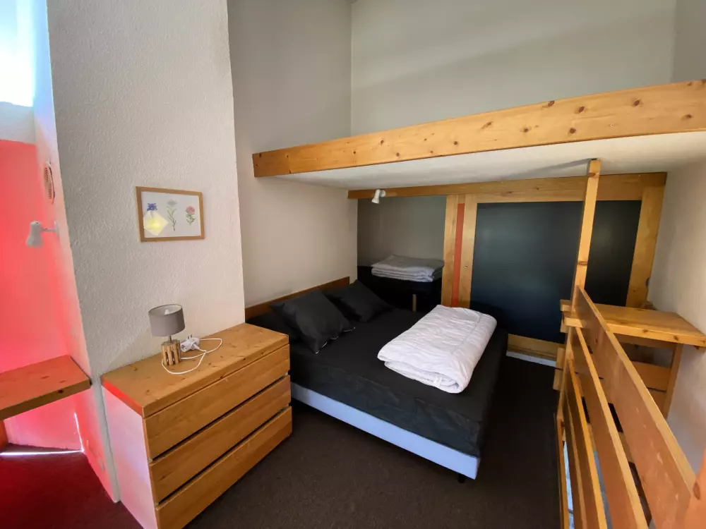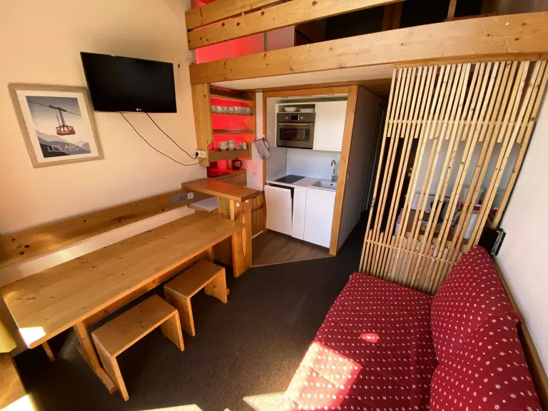Le studio se compose d'une mezzanine surplombant le séjour avec 1 lit double et 2 lits gigognes dans le séjour.