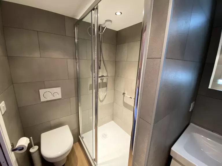 Salle de bain avec douche et wc.