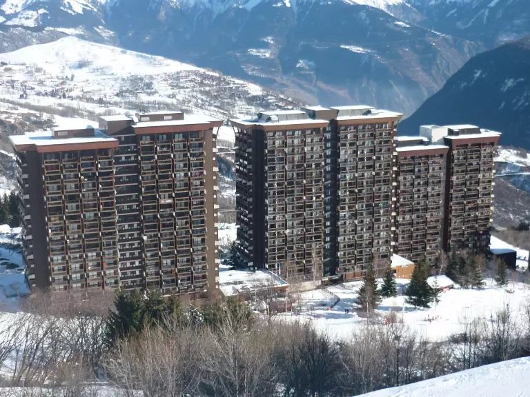 Cette résidence très bien située, est à proximité des commerces, de l'ESF, elle se situe au pied des pistes, et à 2 pas du front de neige. Garderie enfants à côté.
