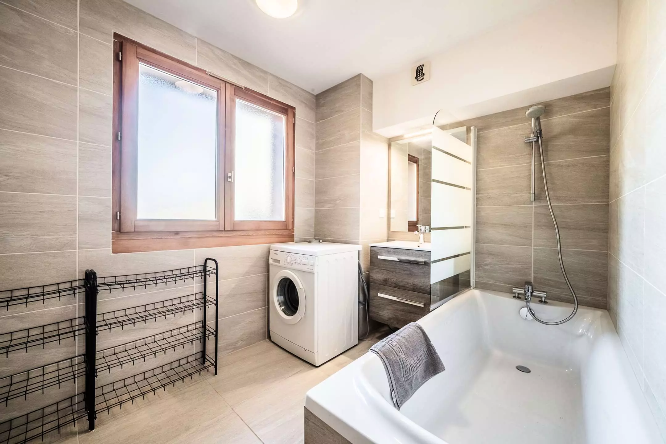 WC indépendant, salle de bain avec baignoire et lave-linge
