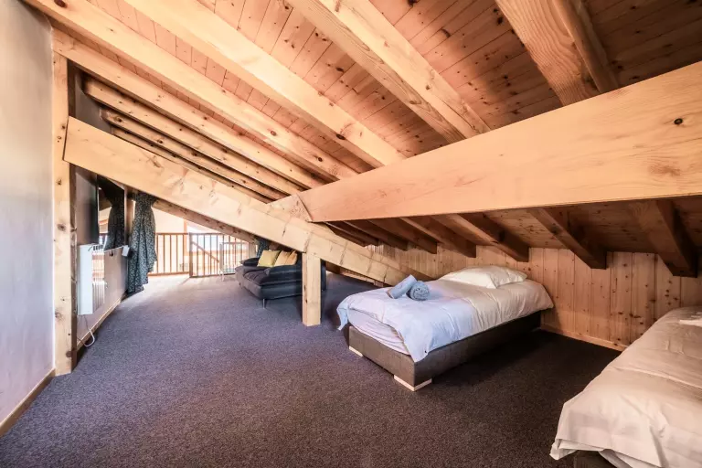 Mezzanine avec 2 lits simples, lit bébé