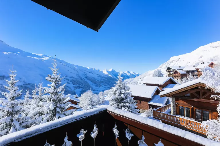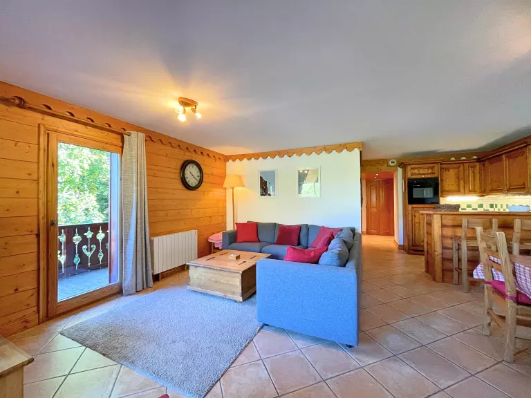 Résidence le Hameau des Marmottes bâtiment A (N°7), 4 pièces pour 6 personnes 75m², au 1er étage par escaliers, balcon exposé Ouest, vue dégagée sur La Masse et la Vallée des Belleville