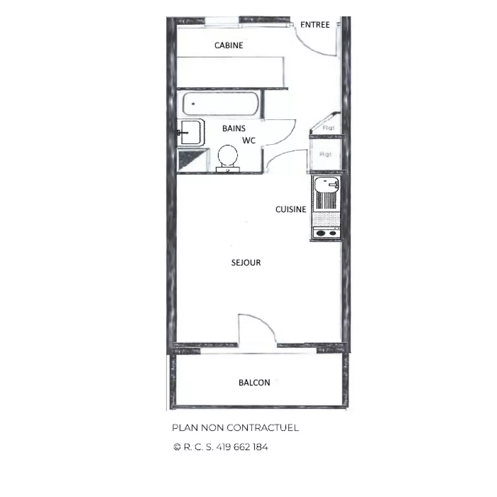 Résidence Necou (N°718), studio avec coin montagne pour 4 personnes 24m², au 7ème étage par ascenseur et au 4ème étage au niveau du balcon, balcon exposé Ouest