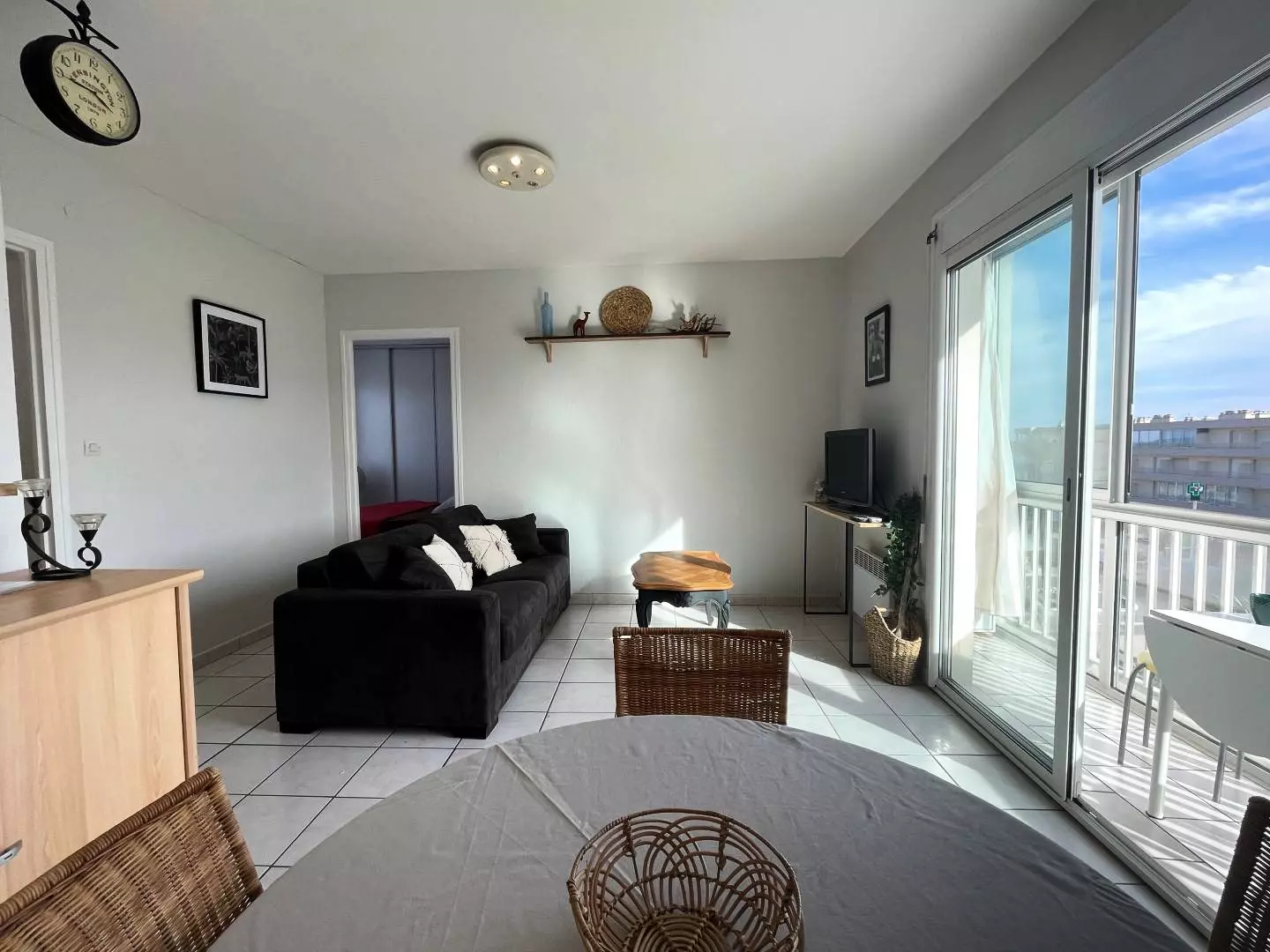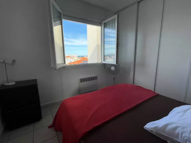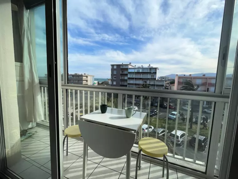 Cet appartement à la mer, au 3ème étage avec ascenseur, vous propose un séjour avec un canapé convertible 2 personnes, une petite cuisine séparée, une chambre avec un lit double formé de 2 lits en 90 rapprochés, une salle d'eau avec douche et wc. Enfin, pour profiter du soleil et la belle vue sur la mer, un balcon loggia vitrée avec un petit salon de jardin.