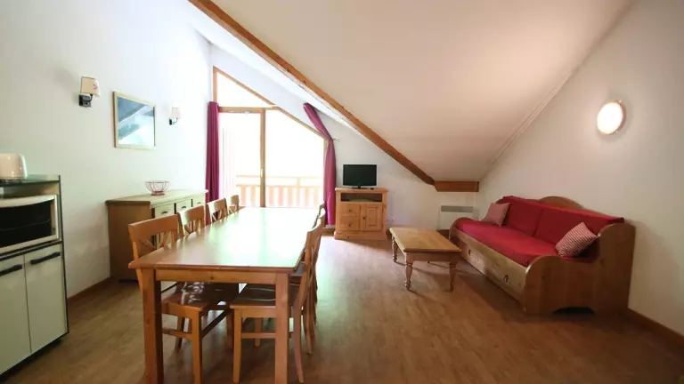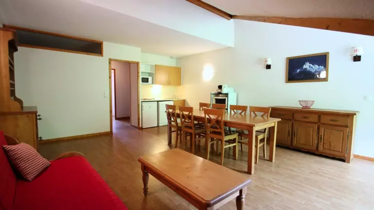 - Cuisine équipée : lave vaisselle, 4 plaques électriques, mini four et micro onde, bouilloire, cafetière, grille pain. Séjour avec une banquette gigogne.
