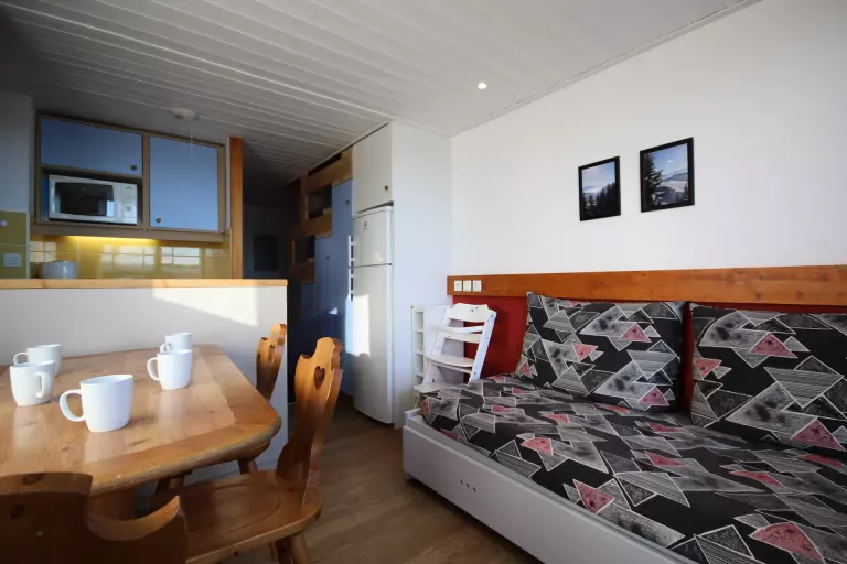 Le séjour est équipé d'une banquette lit gigogne permettant un couchage pour 2 personnes