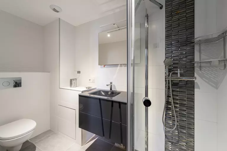 - Salle de douche, simple vasque et toilettes