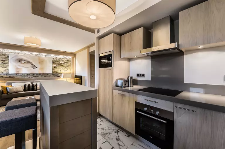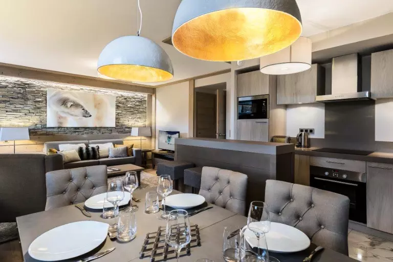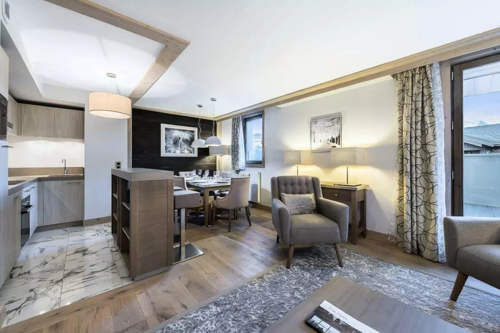 Bel appartement 3 pièces de 78m² pouvant accueillir 6 personnes. Situé dans la nouvelle résidence CARRE BLANC, au coeur de Courchevel Village, à côté des commerces et à deux pas des pistes.