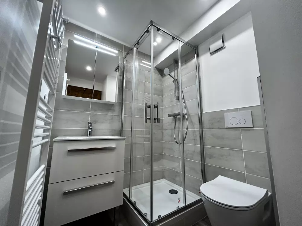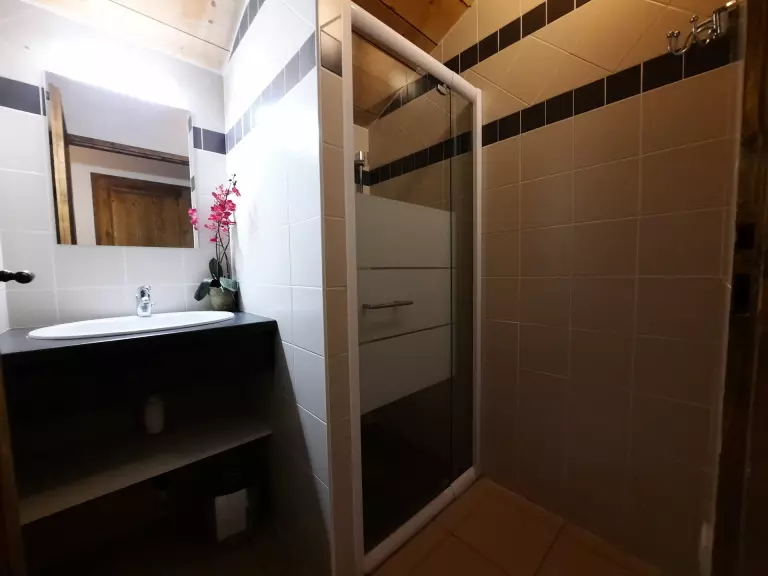 Salle de bain : douche, lavabo, wc
