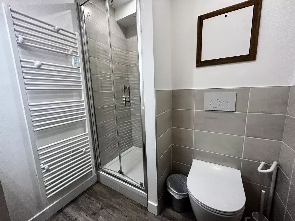 Chambre 3 : 2 lits simples (2x80cm) avec salle de bains (douche, lavabo, toilettes) sèche serviettes