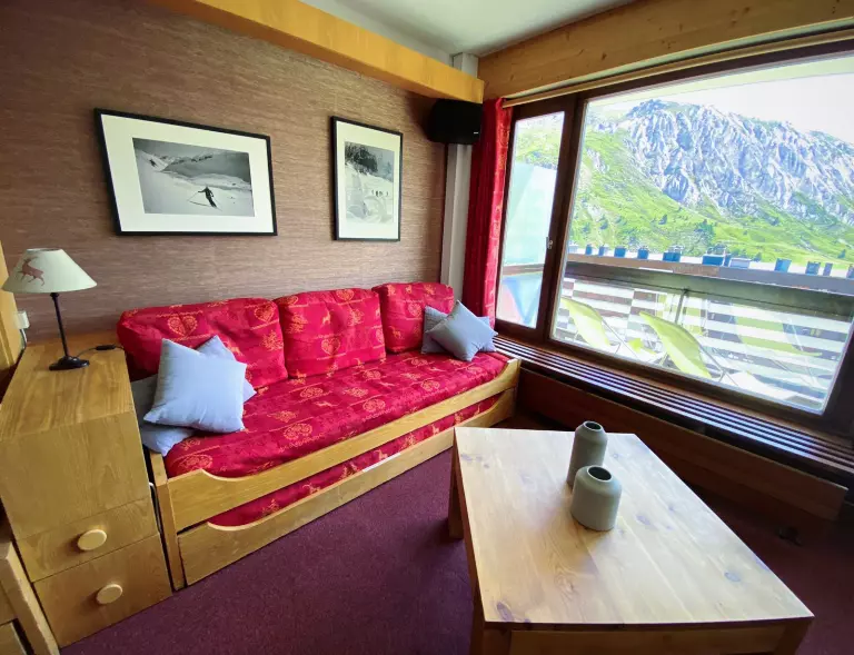 Bel appartement 2 pièces de 52m² équipé pour 7 personnes et situé au 4ème étage avec ascenseur de la résidence "Le Bec Rouge", à Tignes le Lac. Au pied des pistes.
