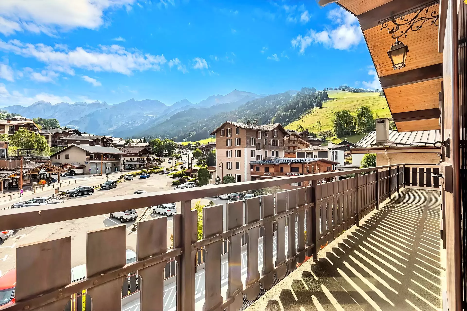 GARAGE situé à 100 m (466 route du Col des Aravis, entrée à droite avant la chocolaterie MORAND, deuxième garage en face, en rentrant). Casier à skis. Grand balcon (52 m²). Chauffage central par radiateurs.
