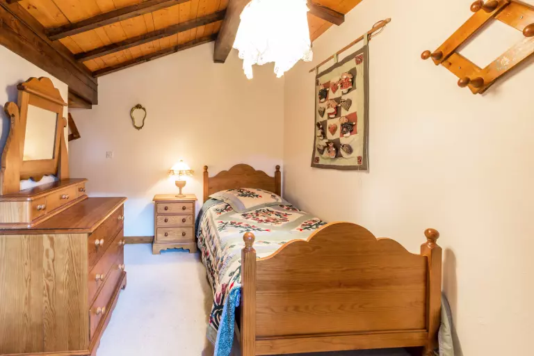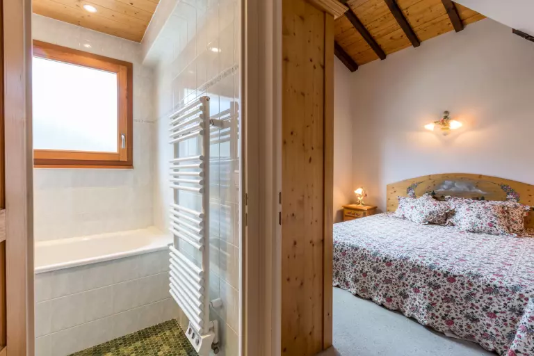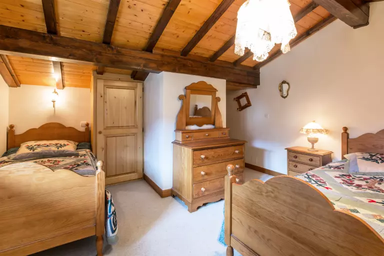 - CHAMBRE (12.83 m² dont 4.30m² mansardés) : 2 LITS 1 PLACE (90), fenêtre ouest, vue montagne