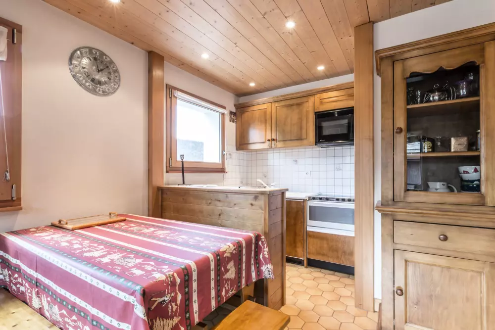 - KITCHENETTE : réfrigérateur (146 L), MICRO-ONDES, TRIO : TABLE VITROCERAMIQUE, FOUR, LAVE-VAISSELLE, fenêtre ouest, vue montagne