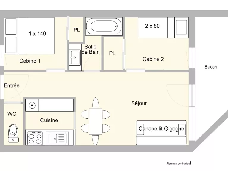2 Pièces 5 Personnes