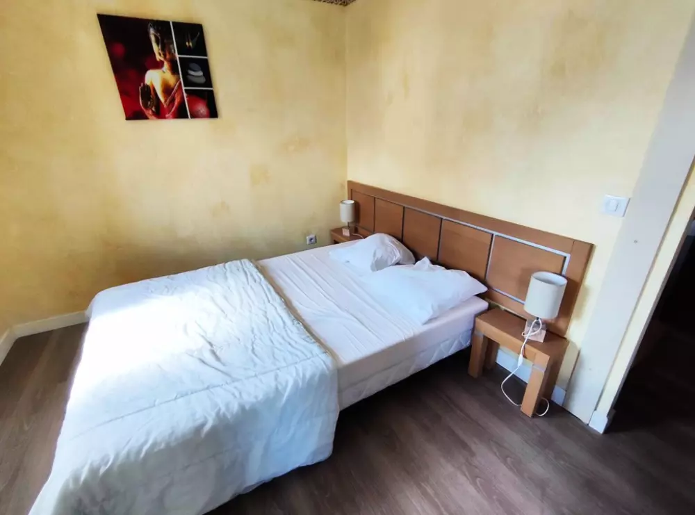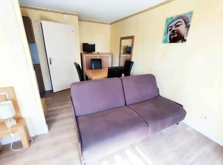 Il renferme une chambre avec 1 lit de 140,un séjour avec 2 couchages (1 canapé lit BZ 140). Cuisine américaine et un coin repas, wc indépendant, une salle de bain