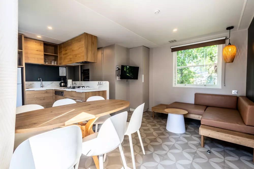 Le camping est ouvert en saison de printemps à automne avec animations renforcées en été. Arrivée possible dès l'après-midi, départ en matinée. Certains emplacements acceptent les animaux, d'autres non selon la zone. Les hébergements de glamping offrent confort complet avec salle de bains privative, cuisine équipée et terrasse. Tarification variable selon période.