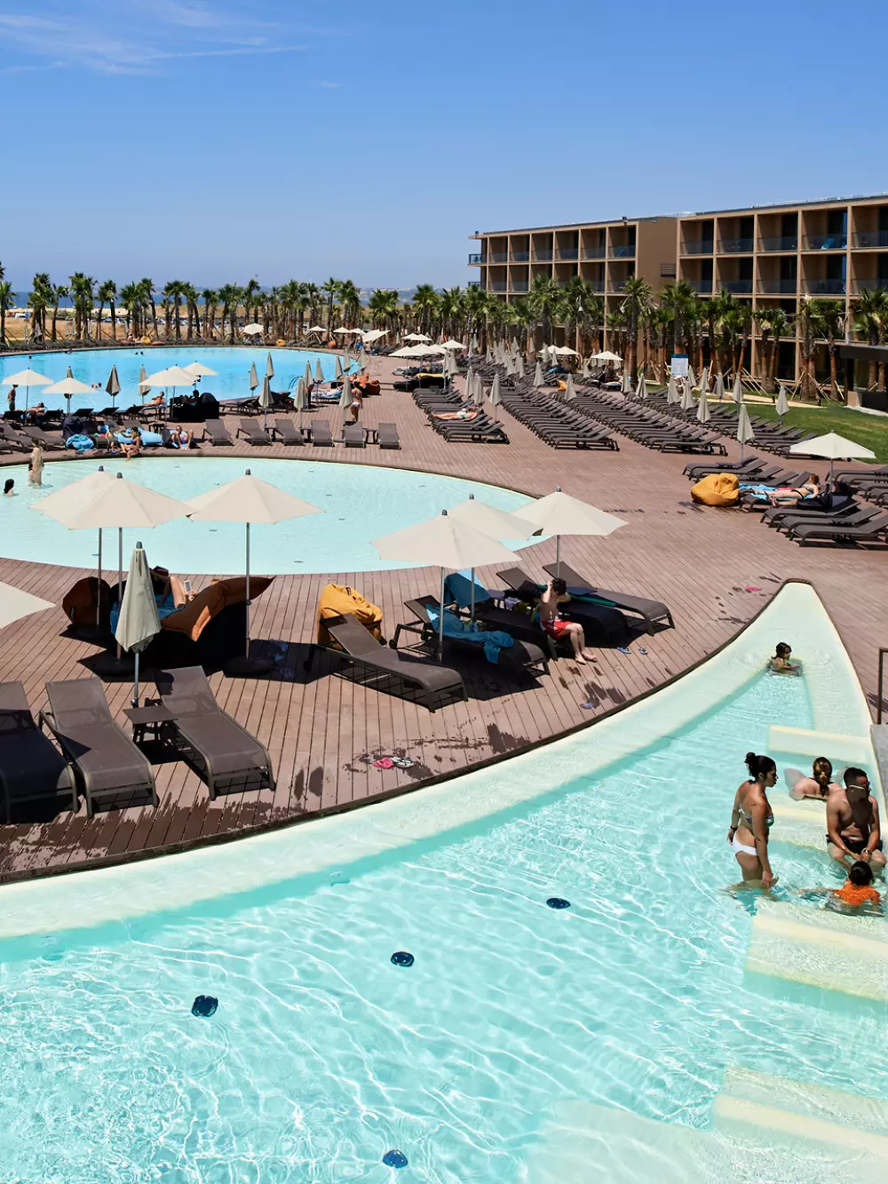 L'Hôtel Premium Vidamar Resort Algarve ***** se distingue par ses infrastructures exceptionnelles. Vous y trouverez trois piscines extérieures, dont une dédiée aux enfants, entourées de jardins luxuriants avec des palmiers. Les amateurs de bien-être pourront se détendre au centre de bien-être Osmos Wellness Center (en supplément), qui propose une gamme de soins et de massages avec des produits de la marque française Thalgo. Pour les plus actifs, un centre de remise en forme est à disposition, ainsi qu'un parcours de golf à proximité immédiate.