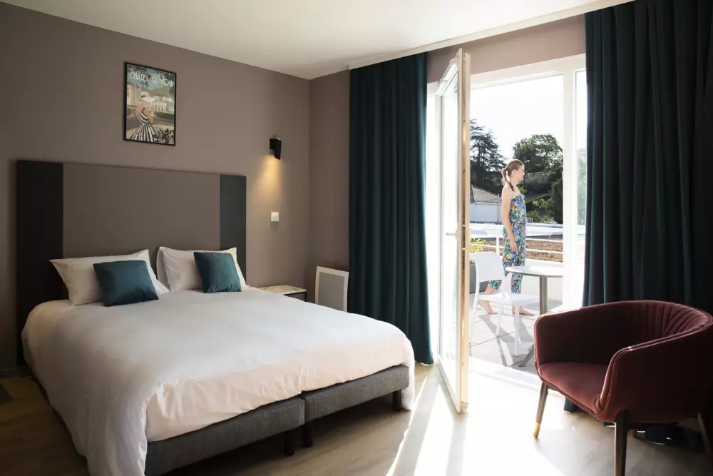 Inspirés de l'architecture Belle Époque de Châtel-Guyon, l'établissement et ses 90 appartements vous offrent un cadre de vie d'exception, alliant à la perfection modernité et beauté intemporelle de l'Art déco pour un séjour régénérant.
