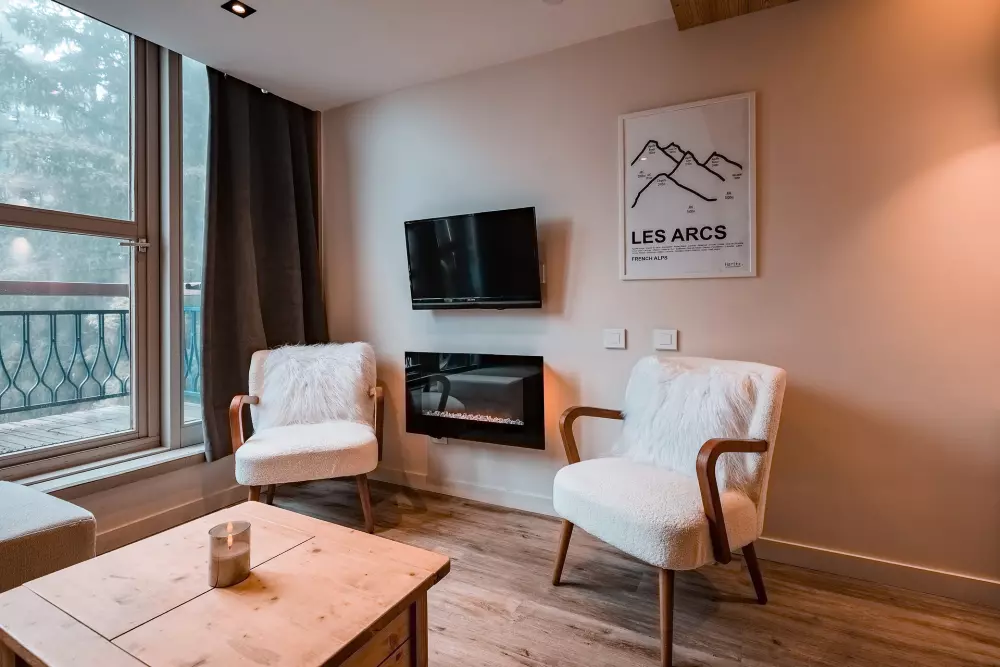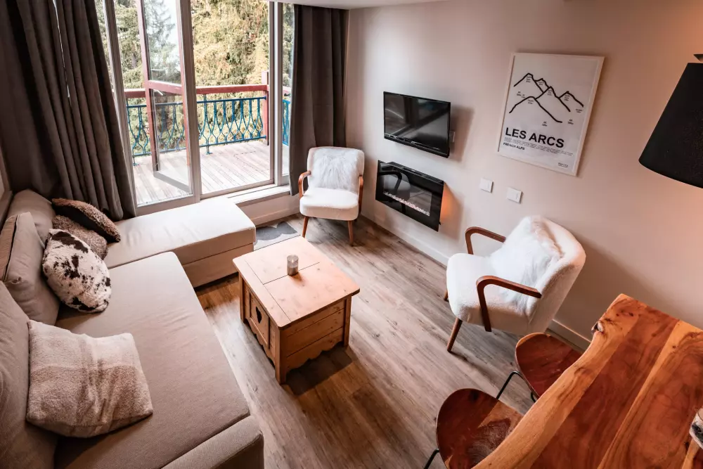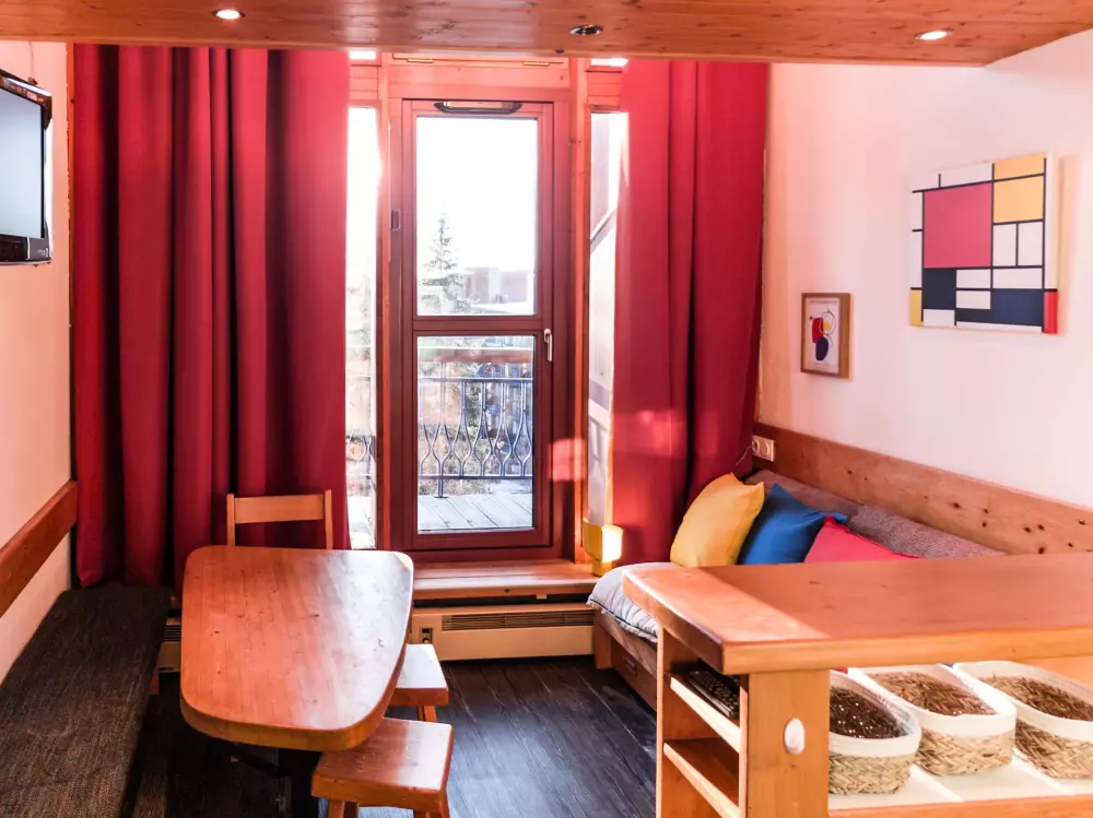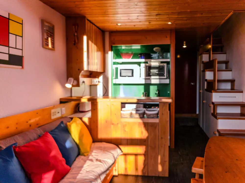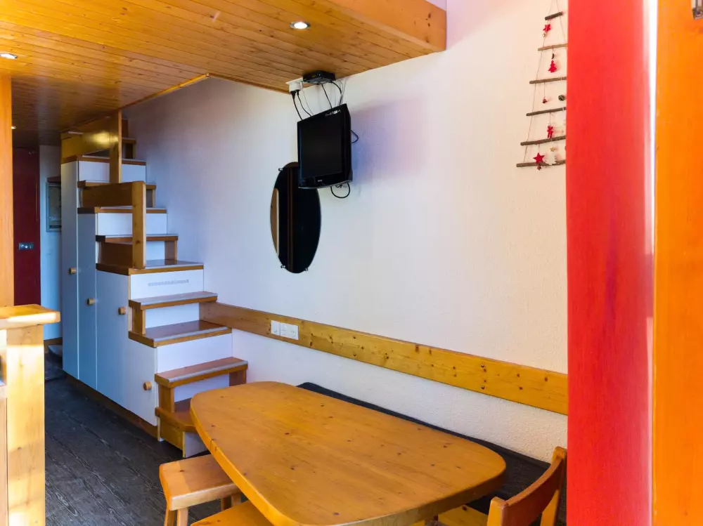 Superbe duplex pour 5 personnes, de style Charlotte Perriand, idéalement situé à Arc 1800 dans le village de Charmettoger, avec 16 Photos