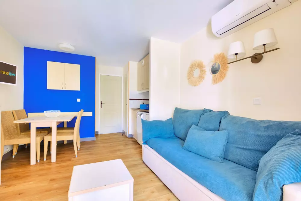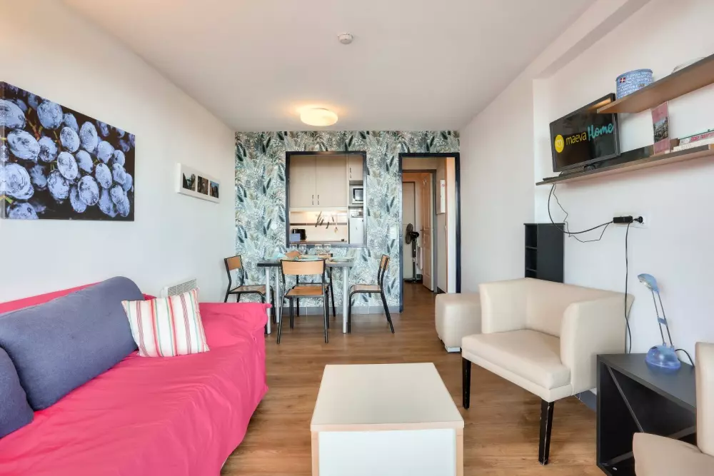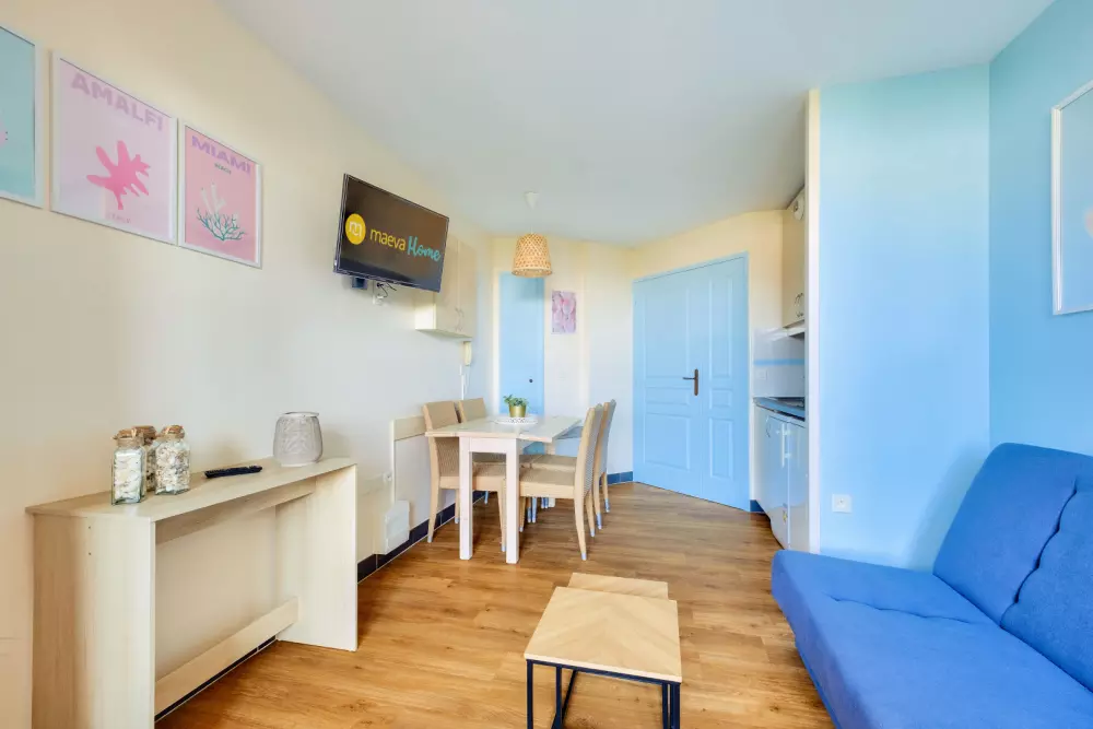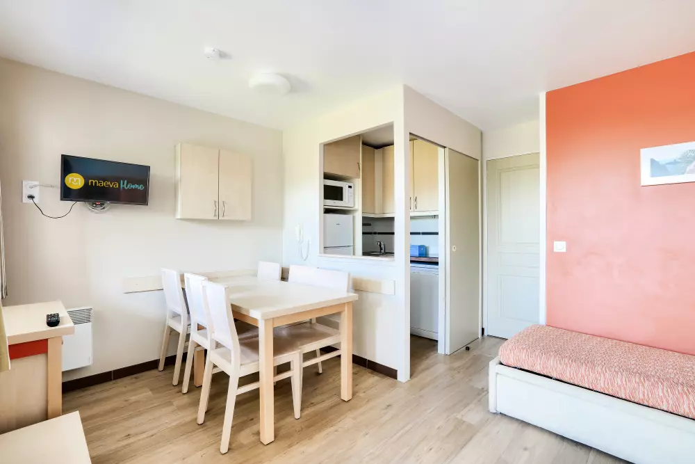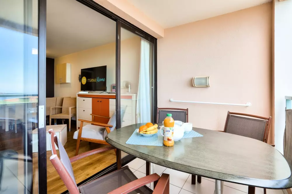 Vous pourrez profiter de la belle piscine à débordement de la résidence (des transats sont disponibles - ne sont pas gérés par maeva mais par une entreprise externe - en supplément, prix consultable sur place, piscine non chauffée à partir du 4 avril jusqu'au 2 novembre) et de la plage située à 800 m.