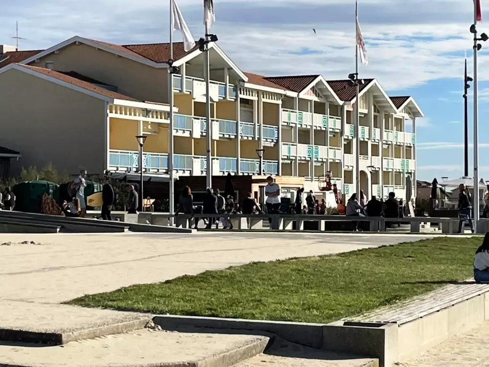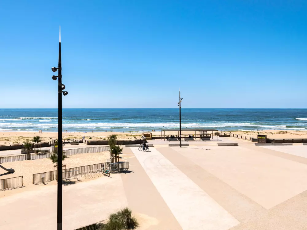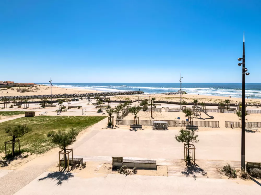Mimizan-Plage: Immeuble de 3 étages bénéficiant d'une situation privilégiée dominant la plage face à l'océan, à proximité immédiate de la corniche piétonne. Résidence "Cap Océan". Dans la localité, à 100 m du centre de Mimizan-Plage, situation centrale, animée, à 100 m de la mer, à 100 m de la plage. Infrastructures de la résidence: ascenseur, réduit pour bicyclettes. Place de parking. Magasin d'alimentation 80 m, supermarché 500 m, restaurant 80 m, arrêt de bus 400 m, gare ferroviaire "Labouheyre" 30 km, plage de sable "la garluche" 100 m, parc "Landes aventures" 6 km, piscine couverte 6 km, baignade en lac "Aureilhan" 10 km. Terrain de golf (9 trous) 7 km, ecole de surf 100 m, centre équestre 7 km. Attractions à proximité: Bassin Arcachon 70 km, Biscarrosse 35 km, Casino Mimizan - Plage 1 km, Centre Nautique 6 km. Veuillez noter: D'autres appartements sont également proposés à la location dans cette maison de vacances.