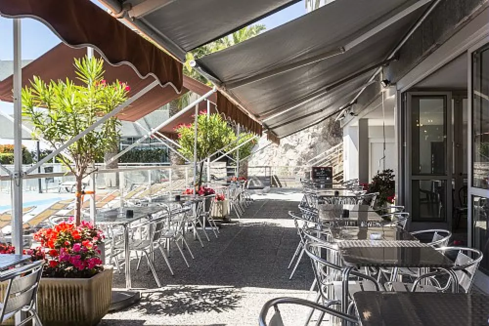 Ce panorama prend encore plus de charme depuis la piscine à débordement panoramique, la pataugeoire ou la terrasse du café-restaurant (ouverture avril-novembre) de la résidence. L'idéal pour un week-end près de Monaco.