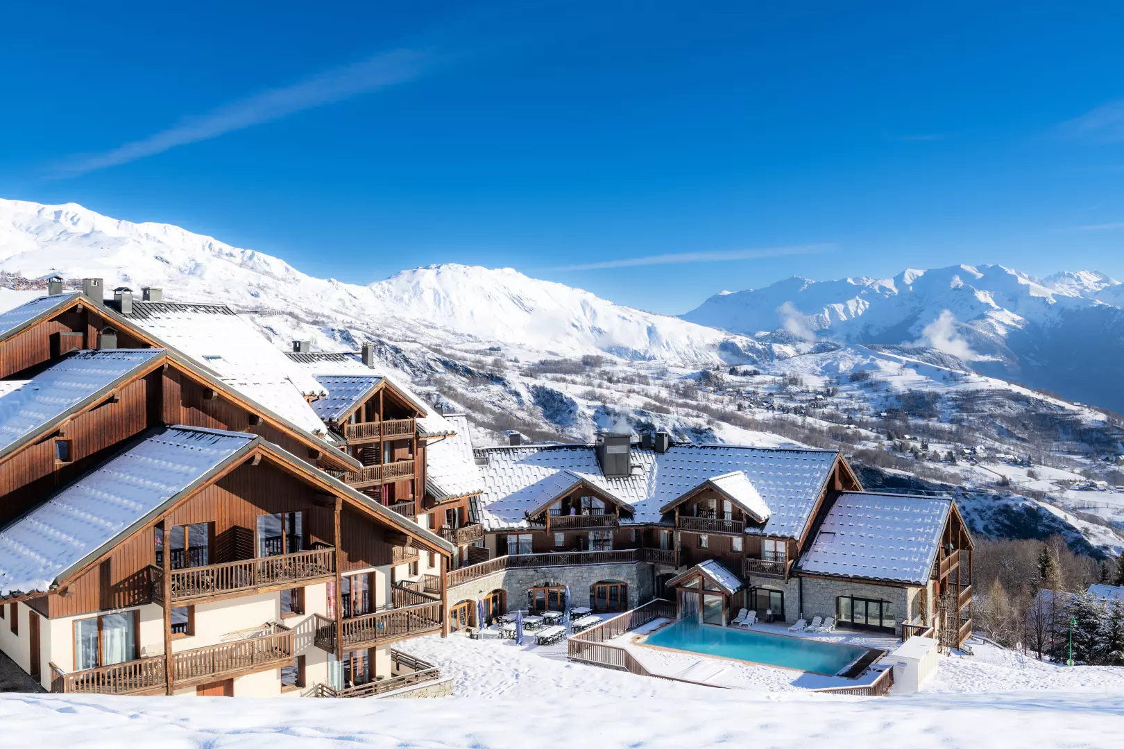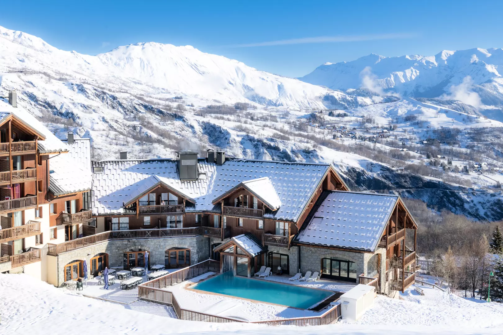 Située à 50 mètres du télésiège de la Voie Lactée, à 300 mètres des commerces et du centre de la station, la Résidence Goélia Les Alpages du Corbier*** se répartit en 3 chalets à l'architecture montagnarde.
