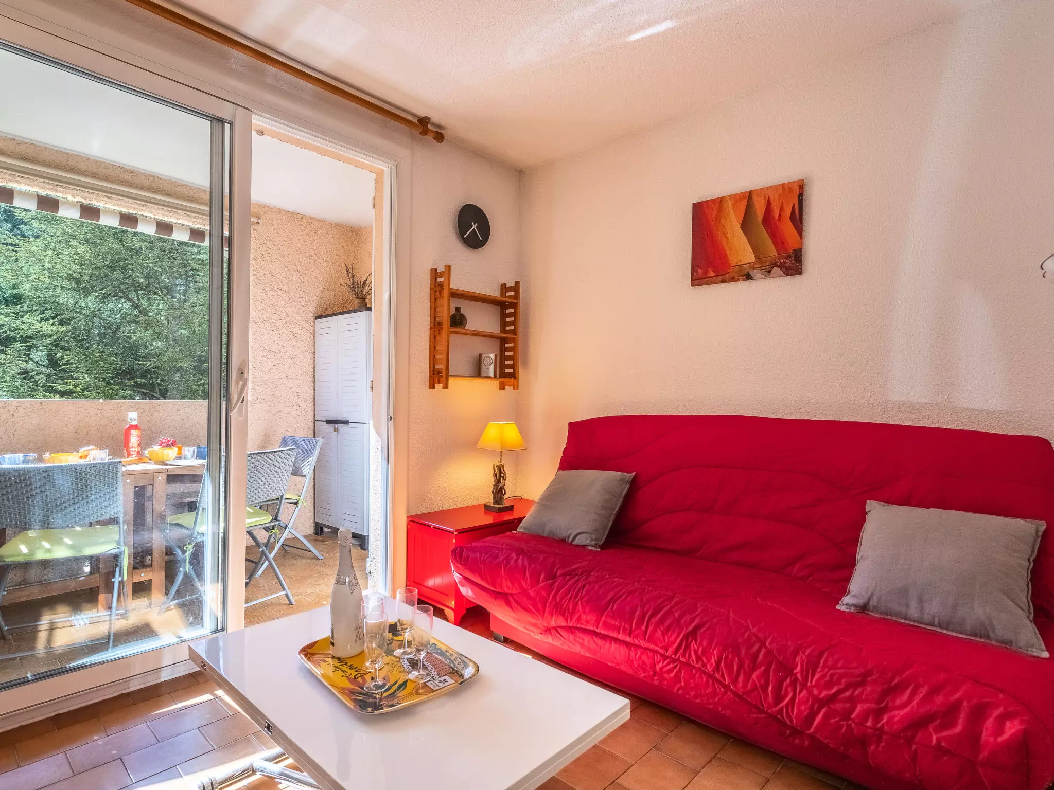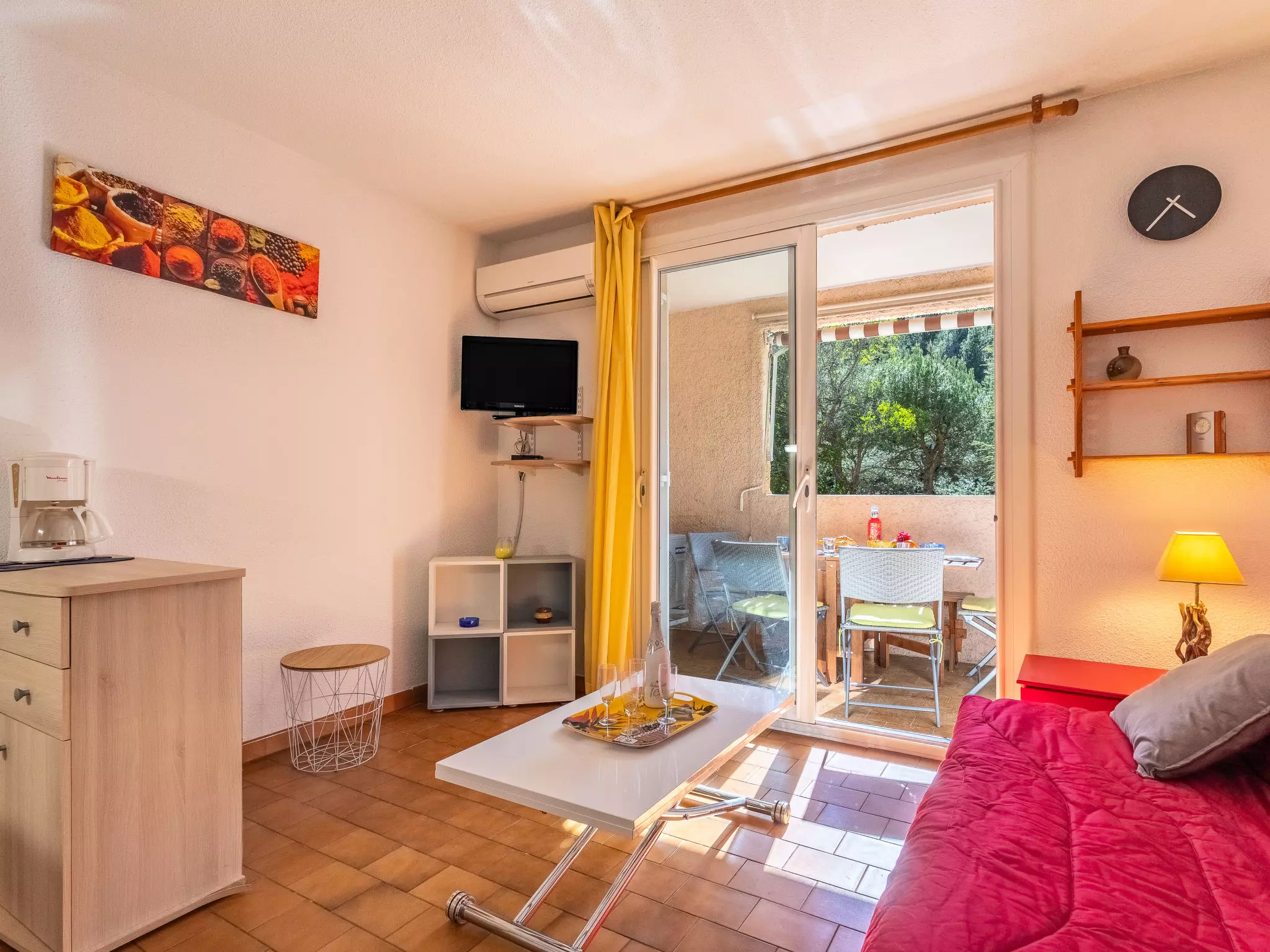 Petite résidence "Hauts de la Madrague", environnée par les arbres. Dans la localité, à 2 km du centre de Saint Cyr, situation tranquille, ensoleillée sur une colline, à 400 m de la mer, à 400 m de la plage. Parking public 100 m en sus. Magasin d'alimentation 200 m, restaurant 300 m, arrêt de bus "Le Viguier" 2.2 km, gare ferroviaire "Saint Cyr les Lecques-La Cadière" 3.3 km, plage de sable, plage de galets 400 m. Port plaisance 400 m, terrain de golf (18 trous) 4 km. Attractions à proximité: Aqualand 3 km. Région de randonnées: Sainte Baume, Sainte Victoire, Calanques Port-Cros, Porquerolles, Ile verte, Embiez, Figuerolles, Cassis. La remise des clés a lieu à l'agence Interhome de St Cyr la Madrague. A noter : nombreuses marches dans la résidence.
