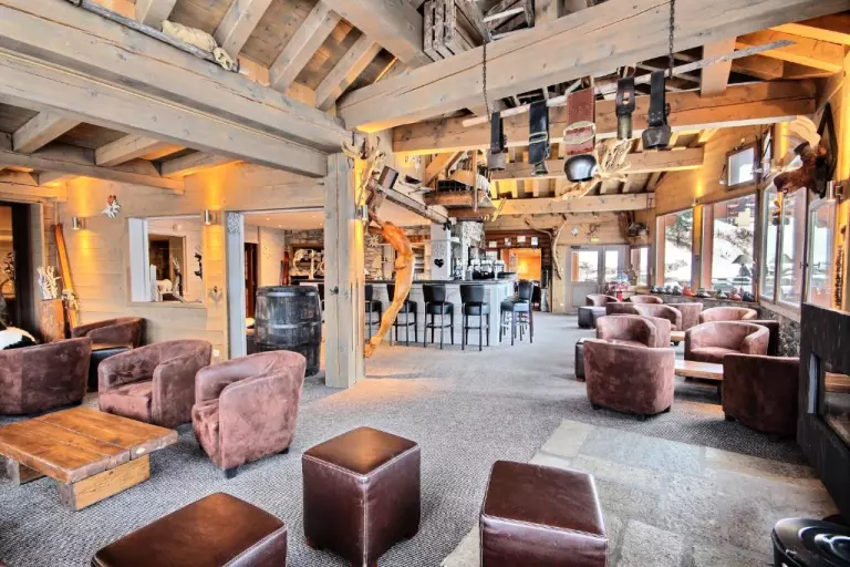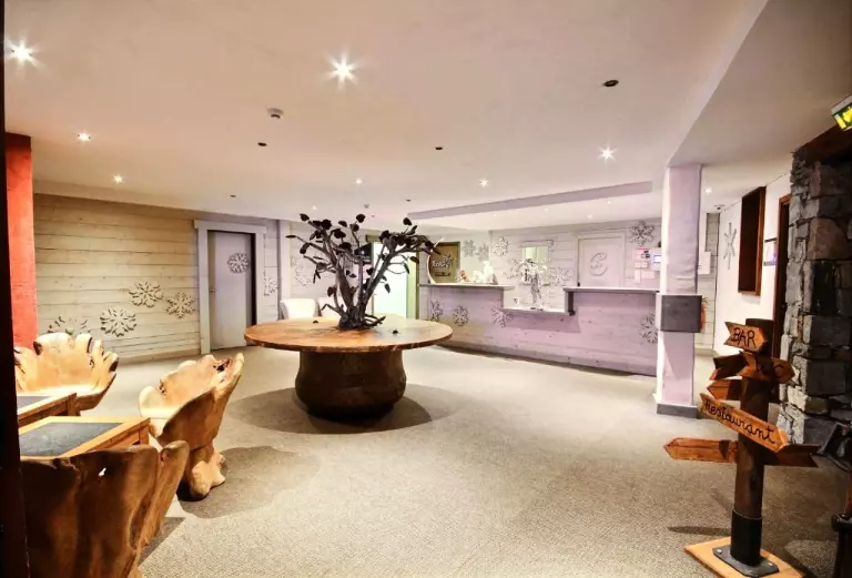 Une décoration 100% montagne faite de pierre et de bois où se mêlent des racines extraordinaires, un lounge bar cosy entouré de fauteuils confortables où l'on vient se réchauffer autour d'un goûter ou prendre l'apéritif au la tombée de la nuit, où l'on prend le temps de savourer la montagne, où l'esprit de famille compte plus que tout autre...