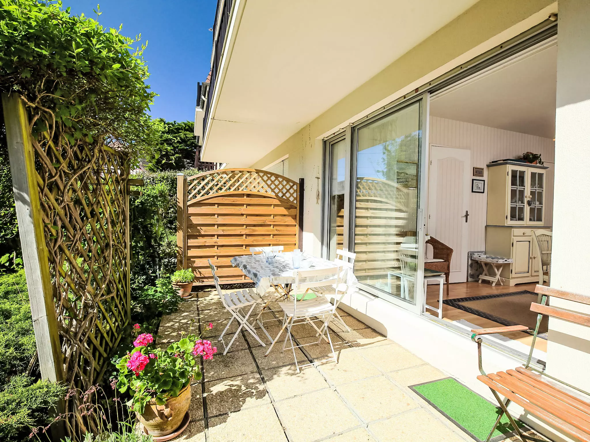 Résidence "Jardins du Casino". Au centre de Cabourg, dans la localité, à 100 m de la mer, à 100 m de la plage. Infrastructures de la résidence: ascenseur. Parking public possible dans la rue. Magasins 150 m, supermarché 1.7 km, restaurant 150 m, arrêt de bus "Hôtel de Ville" 900 m, piscine couverte 150 m, centre thermal "Thalazur" 900 m. Terrain de golf (9 trous) 1.8 km.