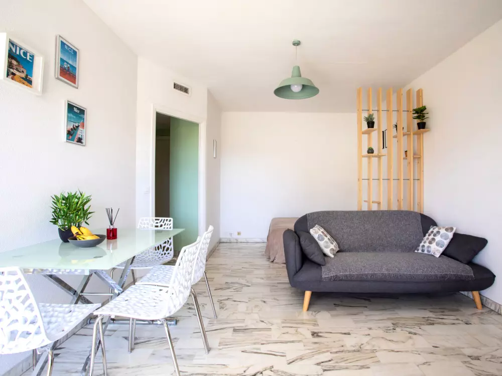 Belle résidence "le ponant". Situation tranquille, ensoleillée, à 100 m de la mer, à 100 m de la plage, route à traverser. Infrastructures de la Maison: ascenseur. Place de parking. Centre commercial 1.5 km, restaurant, bar, café 50 m, arrêt de bus "surcouf" 250 m, plage de sable "Plage des flots Bleu" 600 m, plage de galets 80 m. Port plaisance 50 m, ecole de voile 300 m, tennis 250 m. Attractions à proximité: Centre Commercial Cap 3000 1.5 km, Musée Renoir 3.5 km, Nice 10 km, Antibes 12 km, Saint Paul de Vence 10 km. Les lacs connus sont facilement accessibles: Lac du Broc 23 km. Région de randonnées: Parc National du Mercantour 57 km, Col de Vence 22 km. Veuillez noter: night-club/discothèque à proximité.