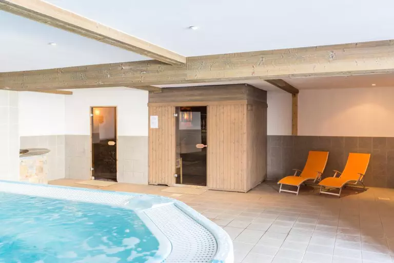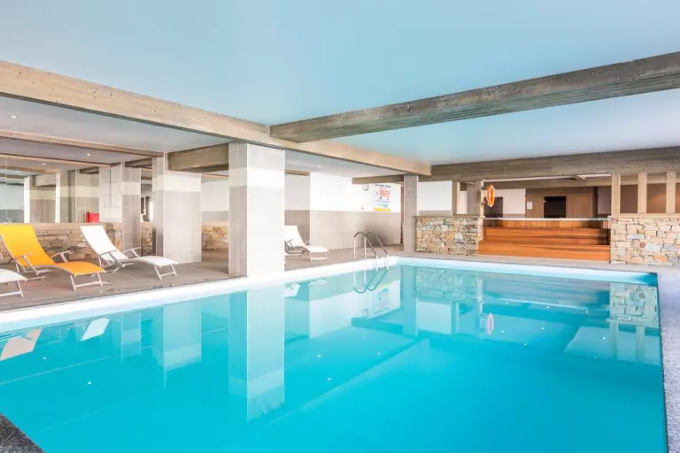 Profitez lors de votre séjour de la piscine intérieure chauffée, d'un espace bien-être avec sauna, hammam et bain à remous (fermé le samedi) et d'un casier à ski par logement.