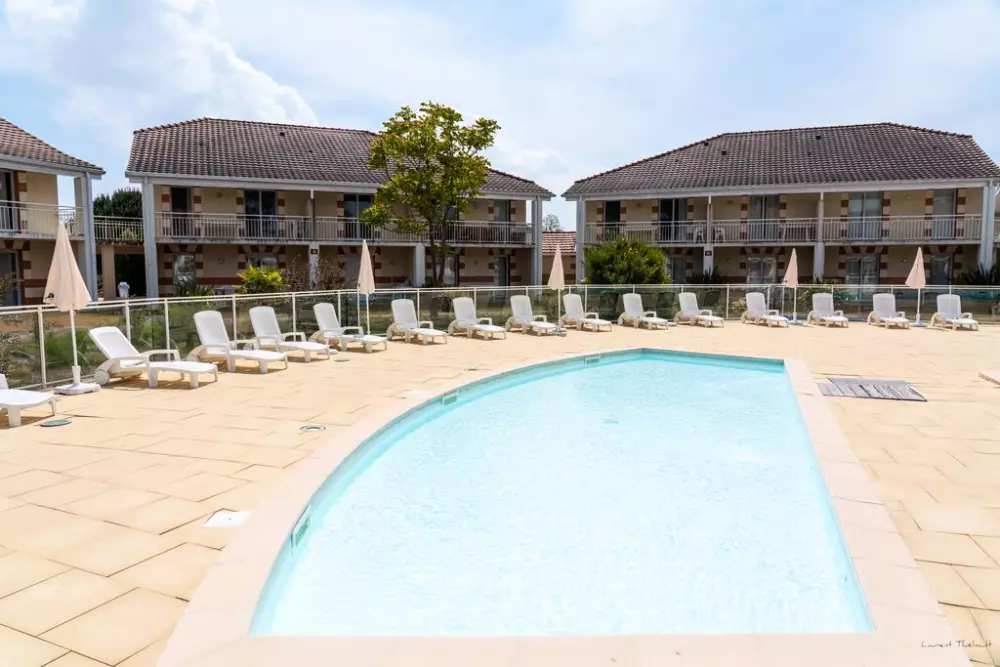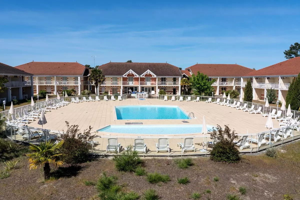 L'établissement se compose de plusieurs bâtiments d'un étage autour d'une vaste piscine extérieure et de sa pataugeoire.