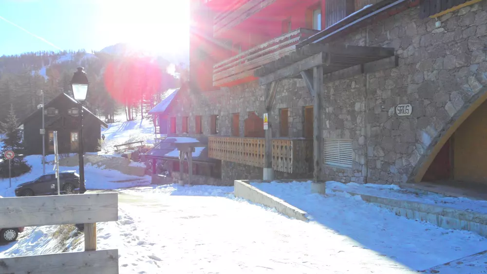 Ancienne résidence de tourisme classée 3 étoiles située en haut de station au pied des pistes, à 100 mètres des commerces et à 300 mètres du front de neige en skis.