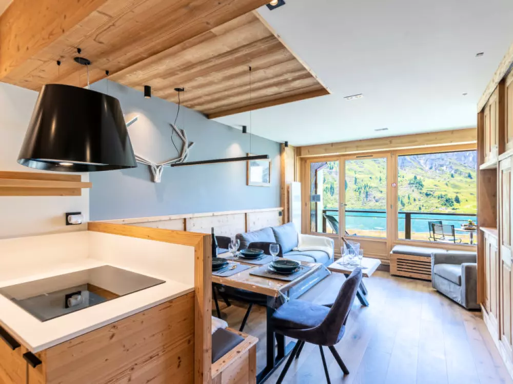 Tignes Le Lac: Résidence "Les Cimes (Le Lac)", de 6 étages. Situation ensoleillée, excellente situation: centrale mais tranquille, au cœur de la ville, à 150 m du domaine skiable. Infrastructures de la résidence: ascenseur, local pour les skis, chauffage central. Magasins, supermarché, centre commercial 10 m, restaurant 5 m, arrêt de bus 500 m. Télécabine 100 m, remontées mécaniques 50 m, location de ski 10 m. Les domaines skiables de renommée sont facilement accessibles: Espace Killy 50 m. Veuillez noter: ski-bus gratuit. Résidence gardée. La remise des clés a lieu à l'agence Interhome de Tignes le Lac.