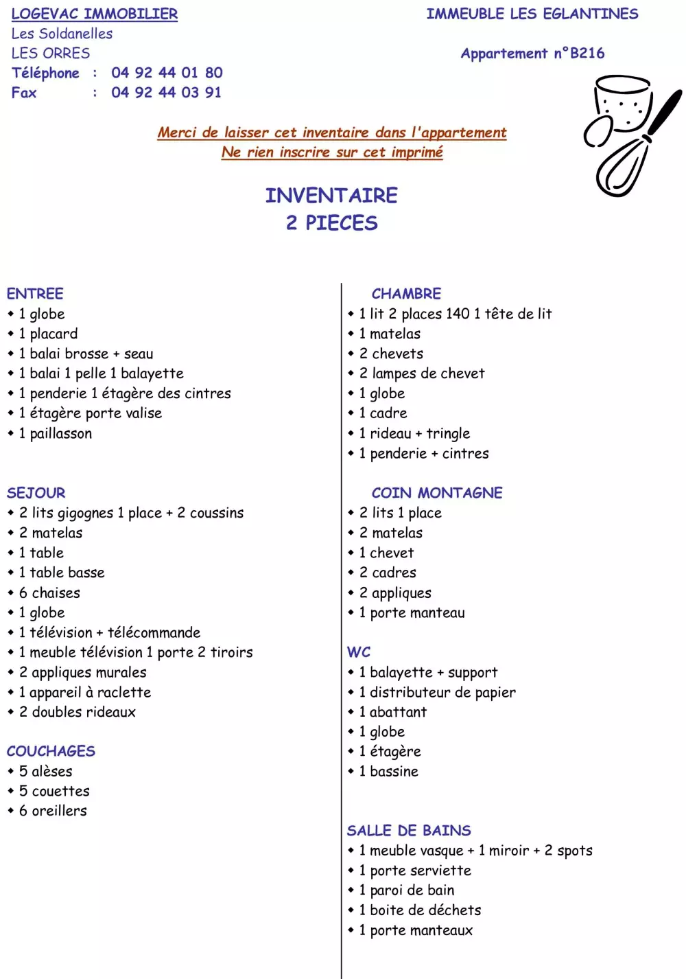 LES EGLANTINES B313, ZAC DE BOIS MEAN 1800