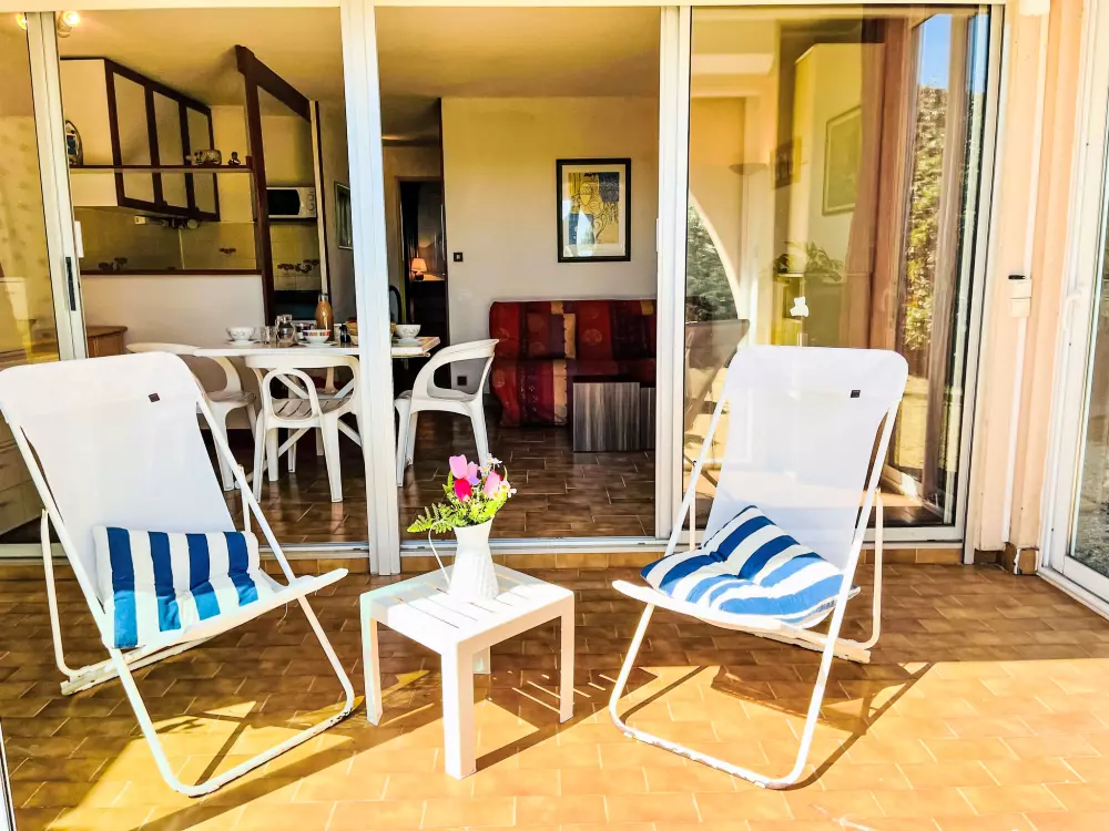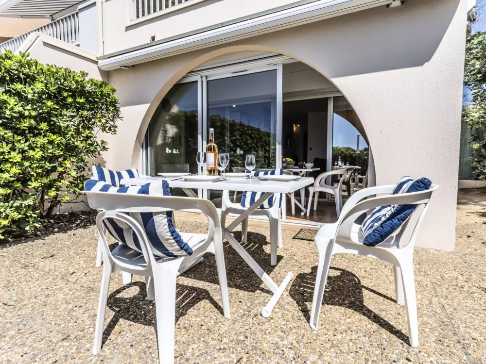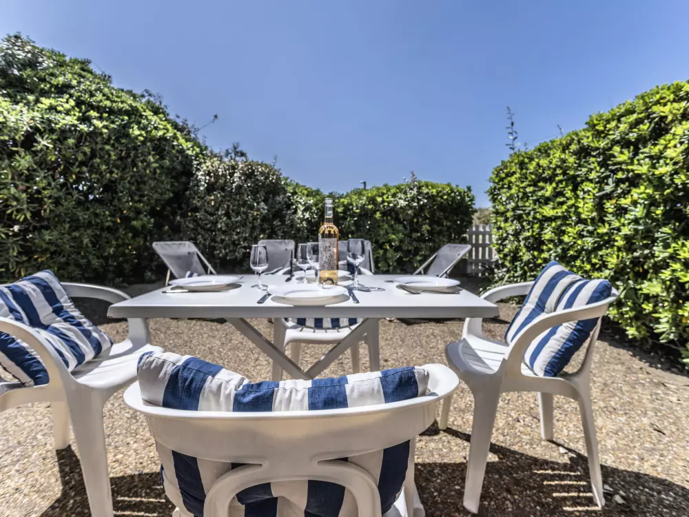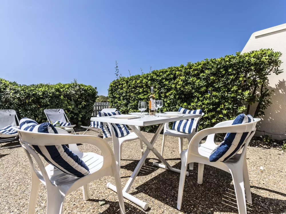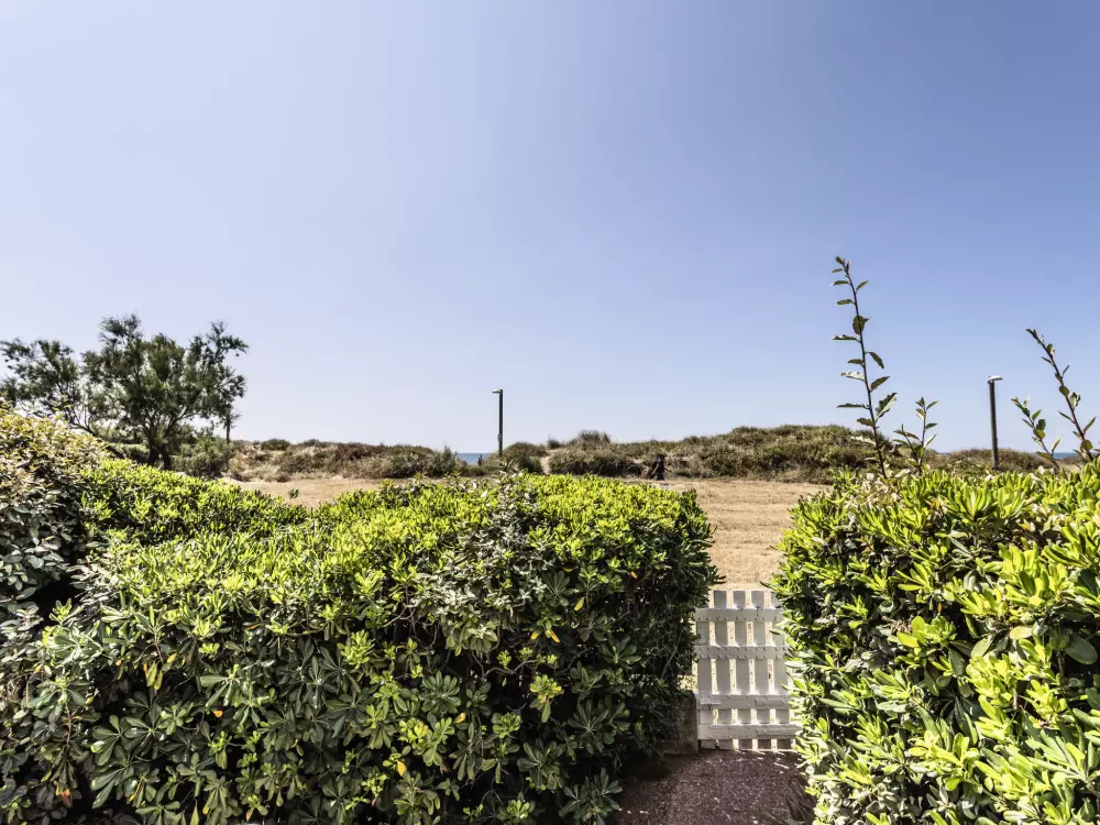 Résidence "Les Maisons sur la Plage". Dans le quartier de Richelieu, à 80 m de la mer, à 80 m de la plage, accès direct à la plage. En commun: grand jardin avec pelouse. Magasin d'alimentation, restaurant, bar 100 m, boulangerie, café 50 m, centre à 20 minutes à pieds, arrêt de bus "Pacifique" 350 m, plage de sable "Richelieu" 180 m. Port plaisance 3 km, terrain de golf (27 trous) 1 km, tennis 3.6 km. Attractions à proximité: Aqualand 700 m, Ile des Loisirs 900 m, Aire de jeux 500 m, Casino 2.5 km.