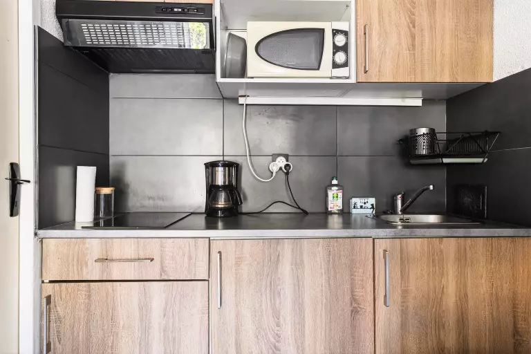 - Kit d'entretien : Inclus - contenu peut varier selon les résidences : éponge, lavette, flacon de produit multi-usages, flacon de produit liquide vaisselle main, tablette lave-vaisselle et torchon.