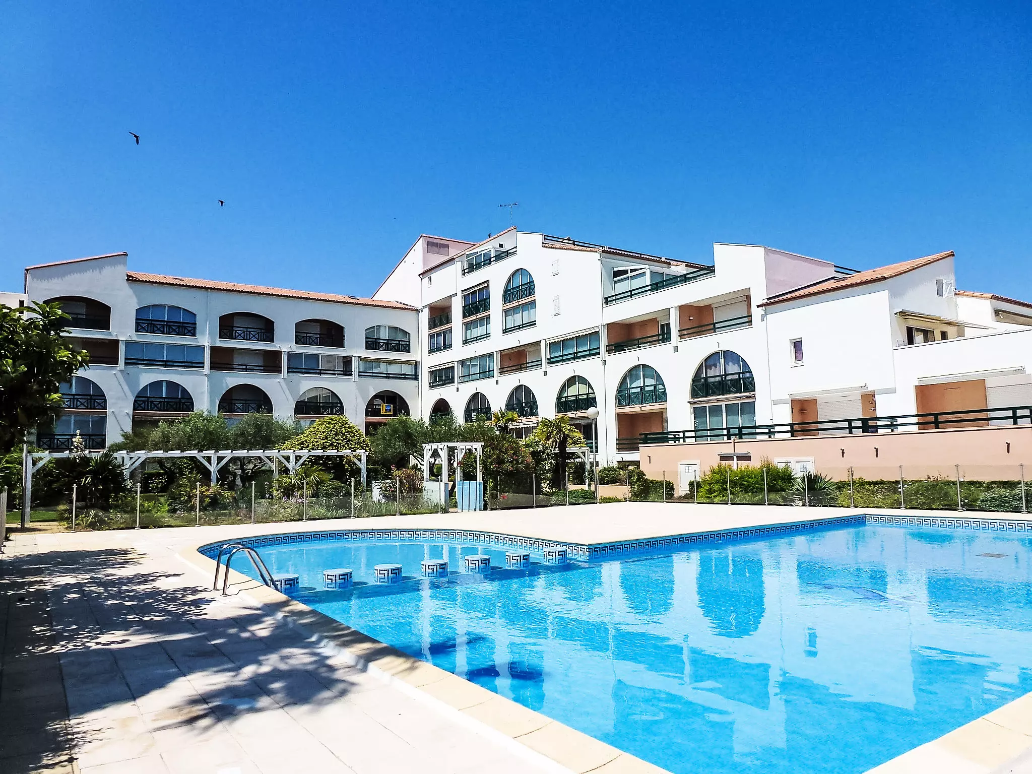 Résidence "Les Terrasses du Lac", de 4 étages. Dans le quartier de la Salonique, en bordure de la localité, à 2 km du centre, à 20 m du lac, à 800 m de la plage. En commun: piscine (15 x 8 m, profondeur 200 cm, disponibilité saisonnière: 15.Jun. - 15.Sep.). Infrastructures de la résidence: ascenseur. Place de parking. Magasins, magasin d'alimentation 300 m, centre commercial 1.5 km, restaurant 300 m, centre à 35 minutes à pieds, arrêt de bus "Le Kaliste" 200 m, gare ferroviaire 3.5 km, plage de sable "Sud" 800 m, piscine 2.8 km, piscine couverte 25 m, centre thermal "Thalazur" 2.2 km. Port plaisance 200 m, tennis 500 m. Attractions à proximité: Casino Flamindo 2 km, Seaquarium 3.3 km, Les arènes du Grau du roi 4.5 km, Aigues-Mortes 8 km, La Grande Motte 13 km, Nîmes 52 km. Région de randonnées: la réserve naturelle. Veuillez noter: voiture recommandée. La remise des clés a lieu à l'agence Interhome de Port Camargue, 1 km. Aéroport 24 km de la maison. D'autres appartements sont également proposés à la location dans cette maison de vacances.