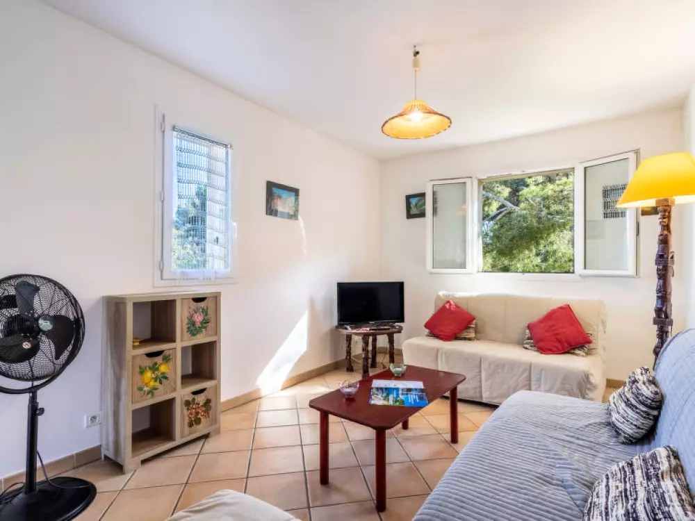 Maison à 2 apts "Lou Mazet". À 4 km du centre de Six-Fours, en bordure de la localité, à 800 m du centre de Le Brusc, situation tranquille dans un quartier résidentiel, à 200 m de la mer. Magasin d'alimentation, restaurant, arrêt de bus 300 m, plage de sable 200 m. Terrain de golf (18 trous) 12 km. Région de randonnées: Sainte Baume, Sainte Victoire, Calanques Port-Cros, Porquerolles, Ile verte, Embiez, Figuerolles, Cassis. La remise des clés a lieu à l'agence Interhome de SIX FOURS LES PLAGES, 4 km. Le rez-de-chaussée est occupé par le propriétaire (entrée indépendante).