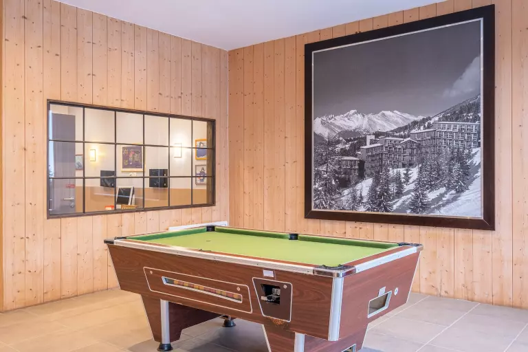 En fin de journée, vous pourrez vous détendre dans notre salon cosy avec bibliothèque, billard et baby-foot. Ici, nous avons tout pensé pour les familles.
