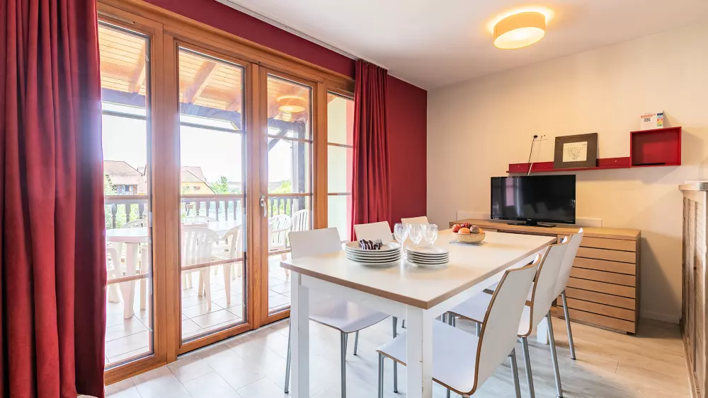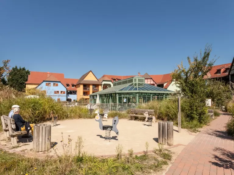 Implantée à deux pas du centre du village, la résidence est labellisée Clef Verte. Autour de vous, vous apercevrez les prestigieux vignobles alsaciens et la nature à perte de vue. Fidèle à l'architecture régionale, elle se compose de plusieurs petits bâtiments colorés à pans de bois qui se fondent dans le décor. Spacieux et écologique, chaque appartement est conçu comme un nid douillet.