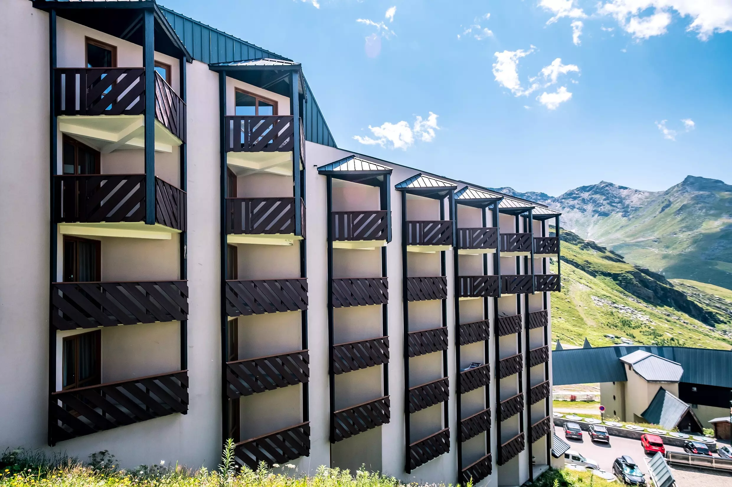 Derrière ses façades de balcons, elle abrite des appartements modernes où le bois et les teintes légères entretiennent une ambiance montagnarde douillette. Le petit plus ? La vue sur la station ou les massifs depuis votre balcon, et son départ skis aux pieds.