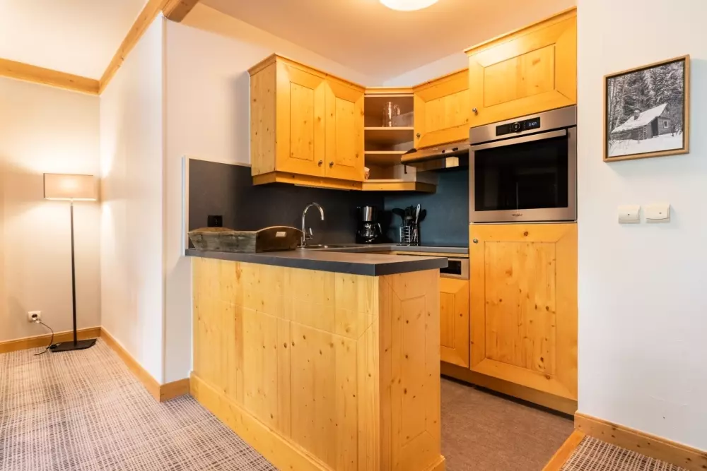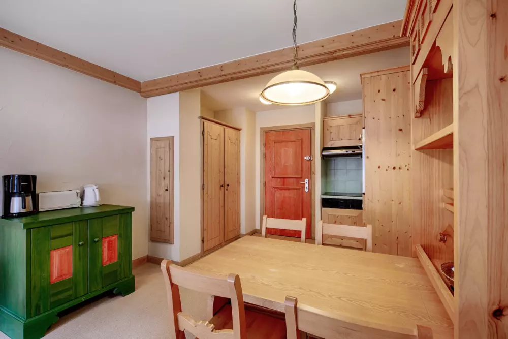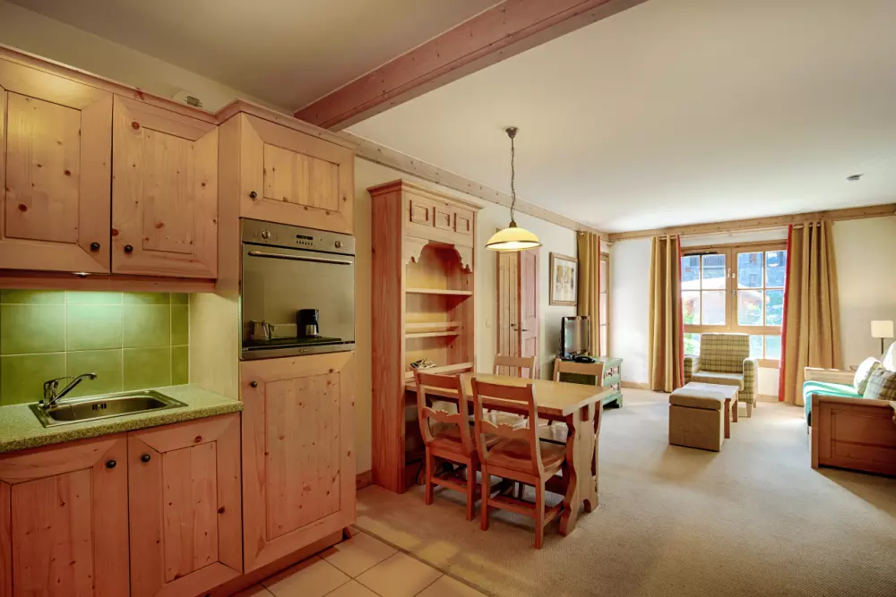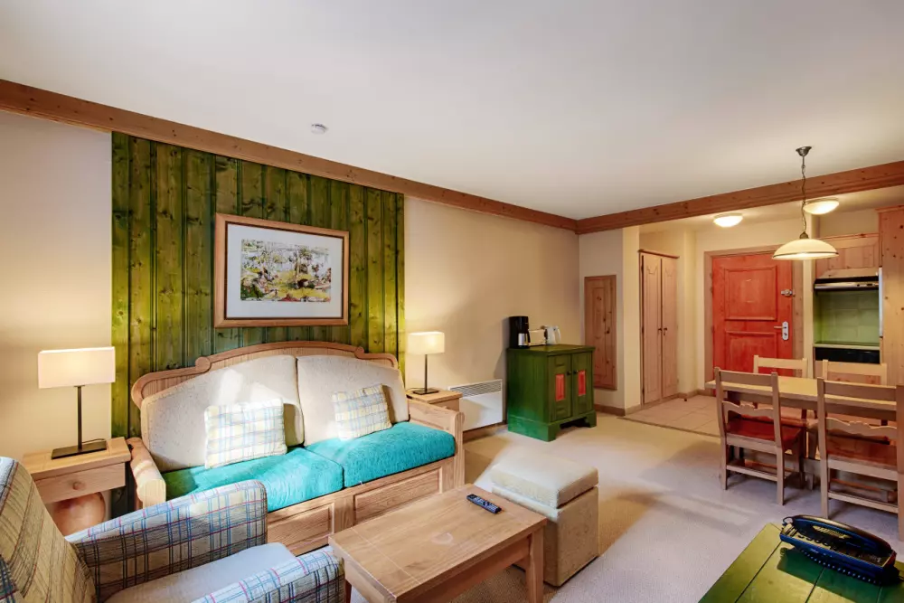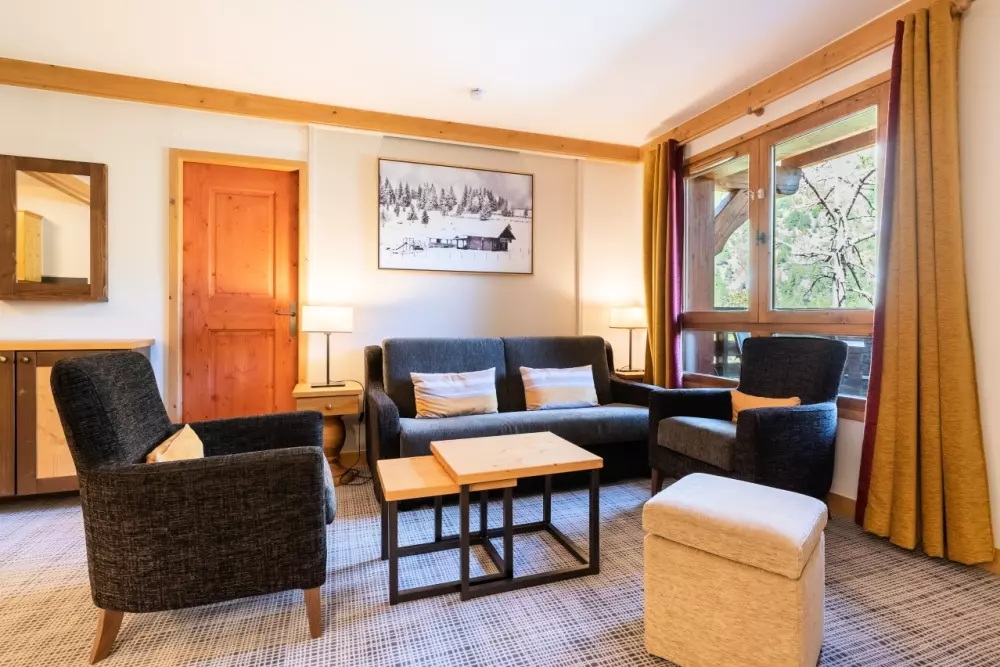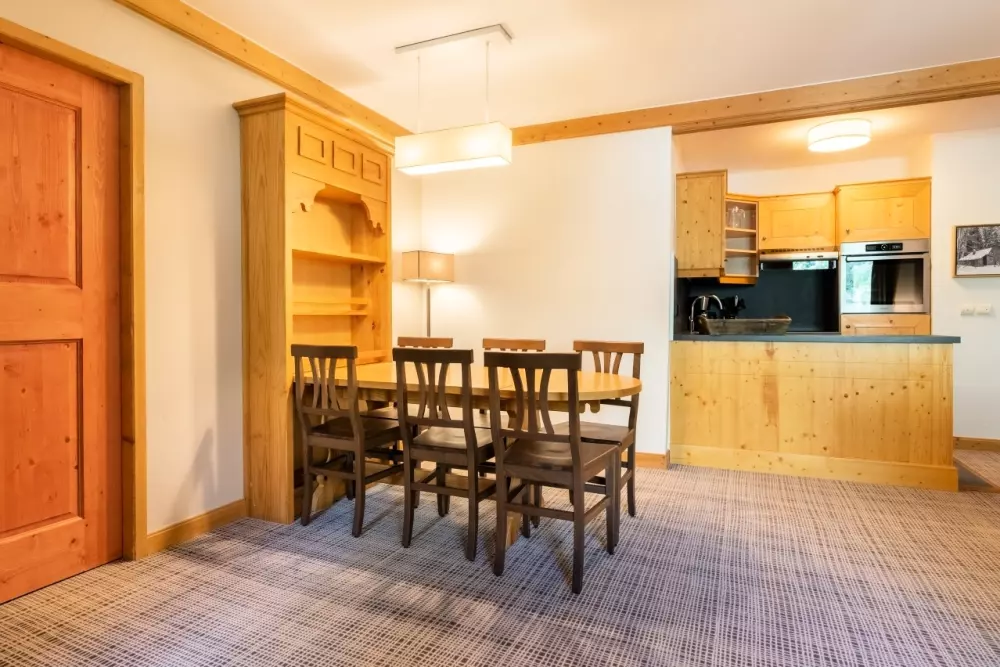 Chacun des bâtiments du village arbore un style différent tout en préservant l'esprit montagnard si chaleureux et confortable. Le bois et les teintes chaudes apportent une touche intimiste et rassurante, vous offrant ainsi un nid douillet au cœur des Alpes.